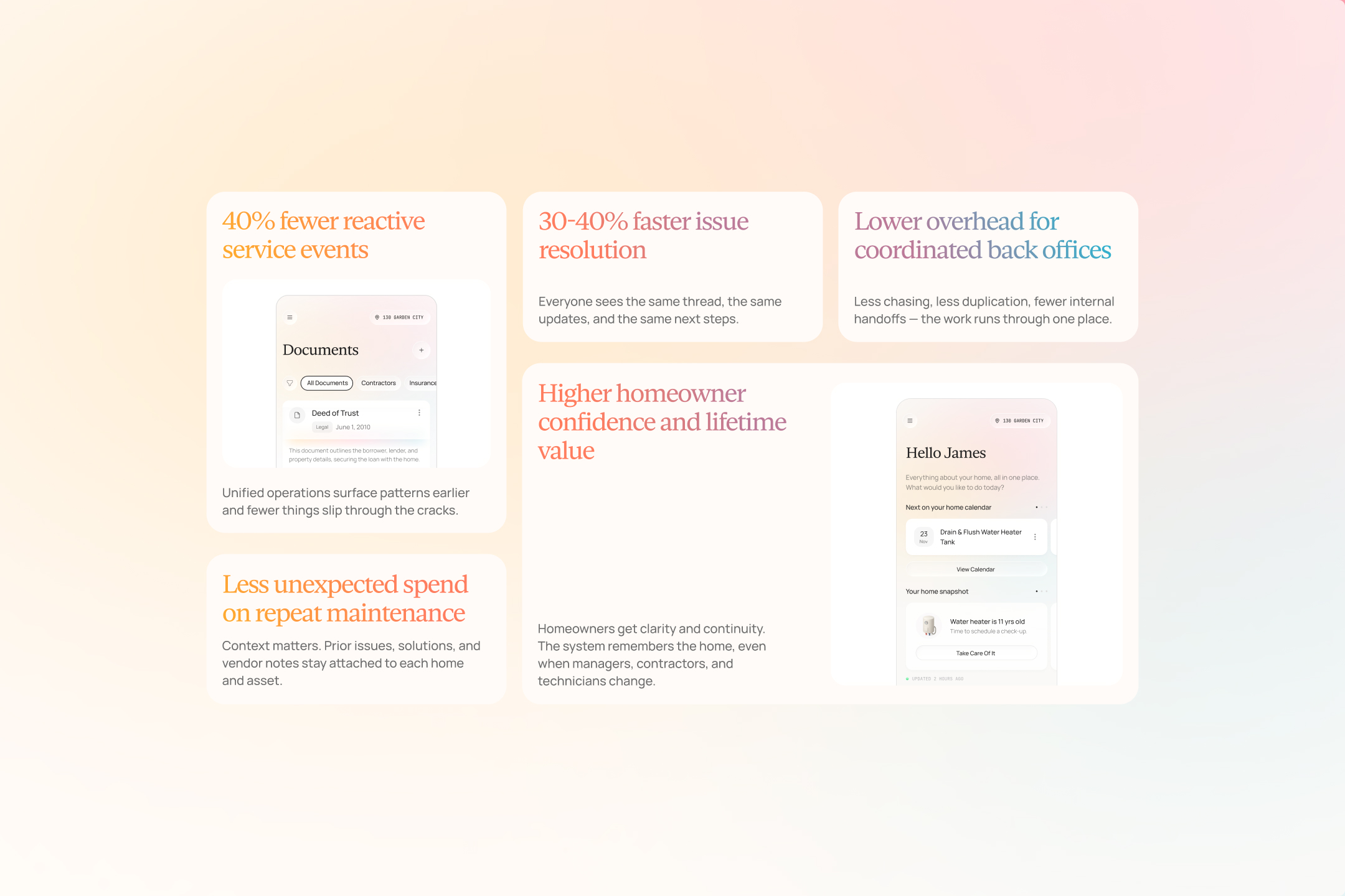 Tools don't connect. Documents vanish into inboxes. Contractors get lost in text threads. The home, the most expensive asset most people will ever own, remains scattered and chaotic.