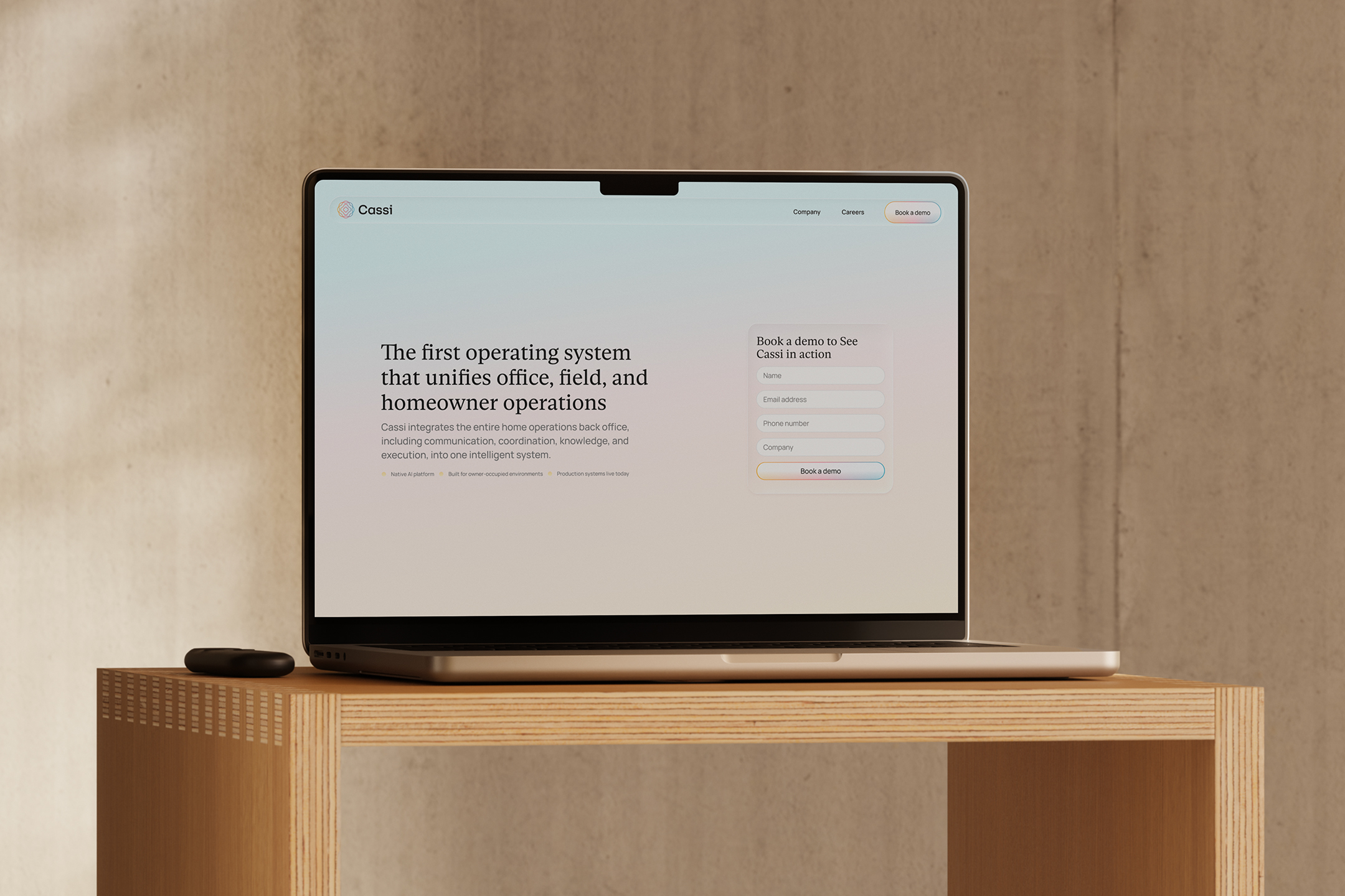 Home management is notoriously stressful. It's fragmented at best, even with solid systems in place. Cassi was born from that universal struggle, replacing the disjointed back office behind modern high-touch home operations, acting as the operating system for office, field, and homeowner operations.