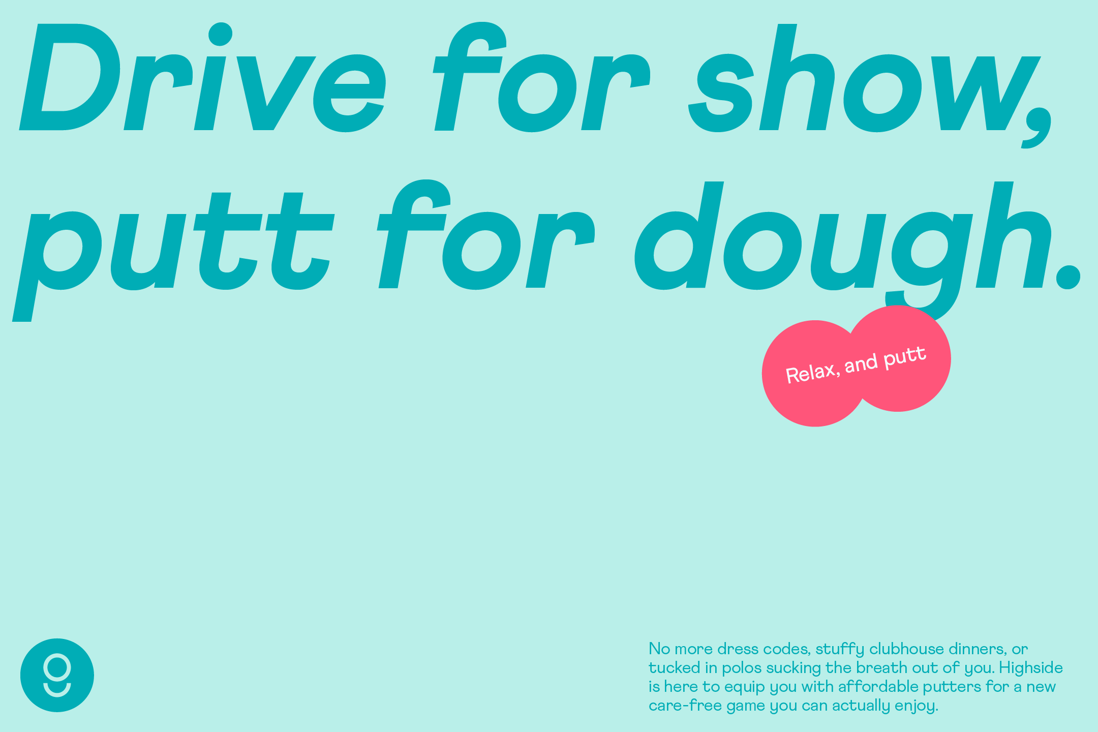 Easygoing and affordable, without compromising on the quality of putters and hardgoods they provide — that's Highside. Golf should invite people in, not scare them away. We sought to capture the essence of the emotion to empower the golfers who feel intimidated by the golf pro crowd.