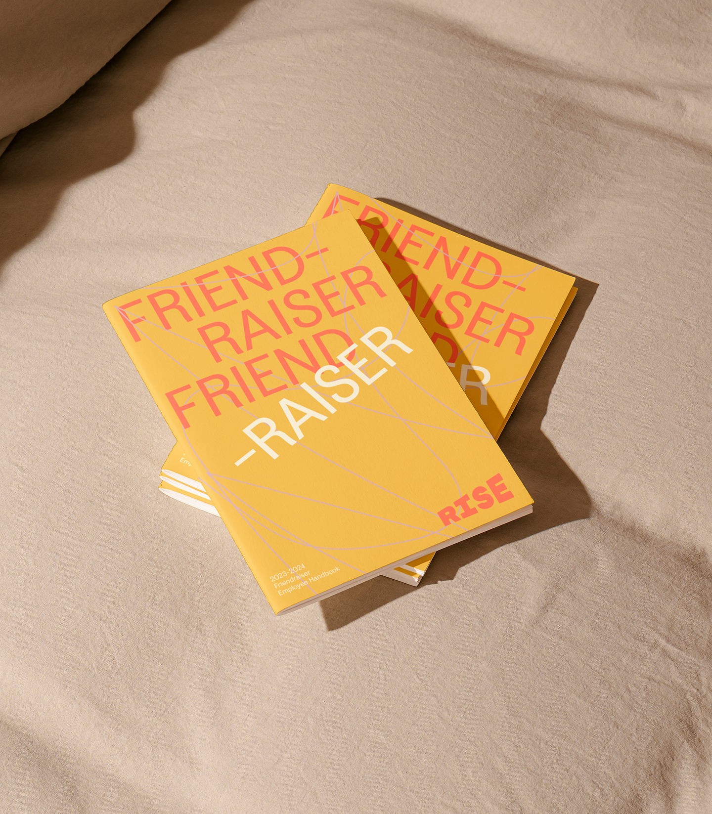Type talks. The typographic approach uses 'broken' words to conceptually emphasize the mission of Rise Against Suicide, which is "Breaking Barriers to Mental Health". Wacky and abstracted character illustrations interact with layouts, driving home the importance of individuality, and rejecting the institutional normalcy pushed by our society. The Rise brand messaging is anchored in the need for uniqueness and individuality, which is our superpower.