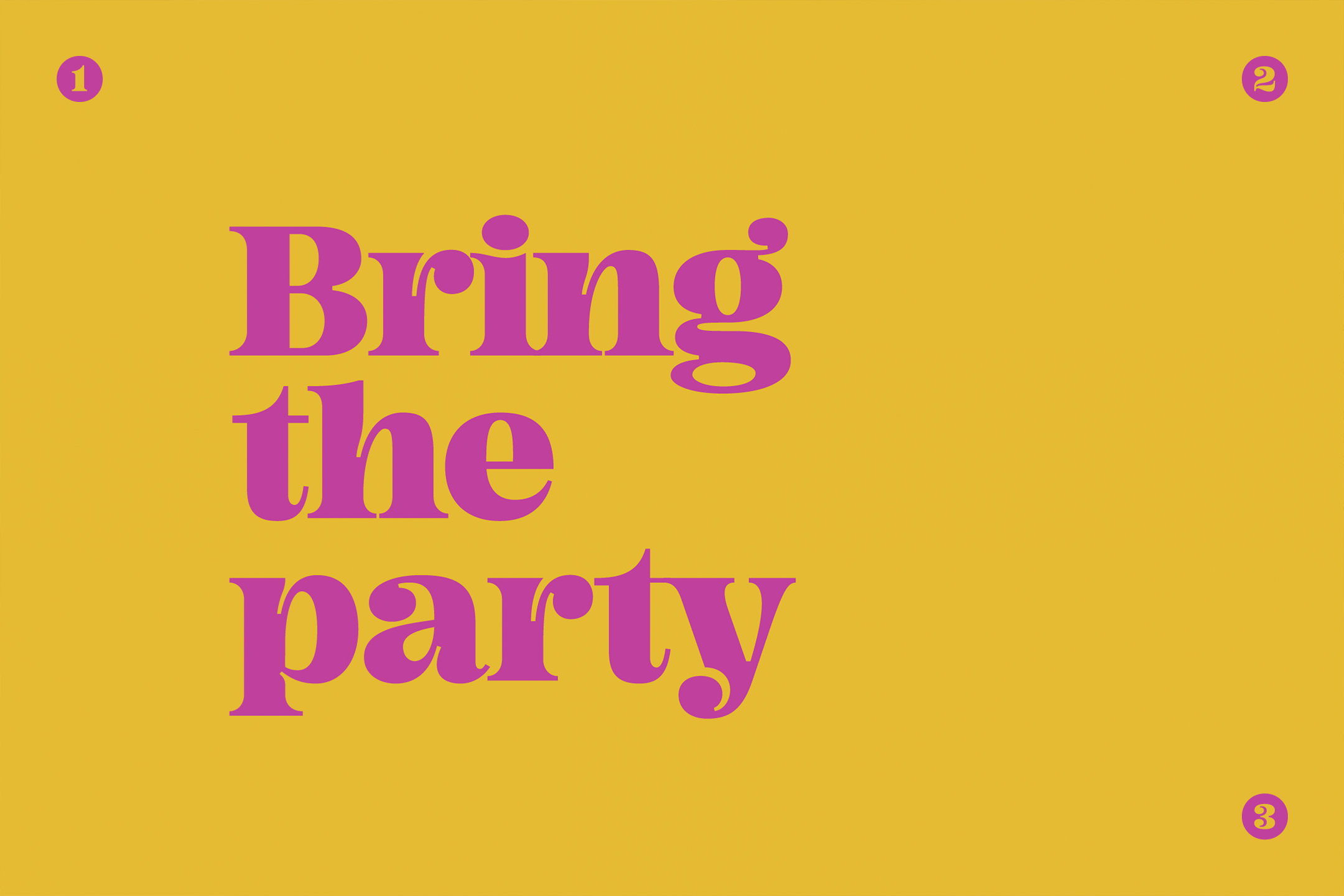 The movement and offset drop shadow of the primary mark influences the rest of the design language. We use offset repeating patterns, feeling like 45 party poppers just went off in your car. An explosion of fun - one that we all need.